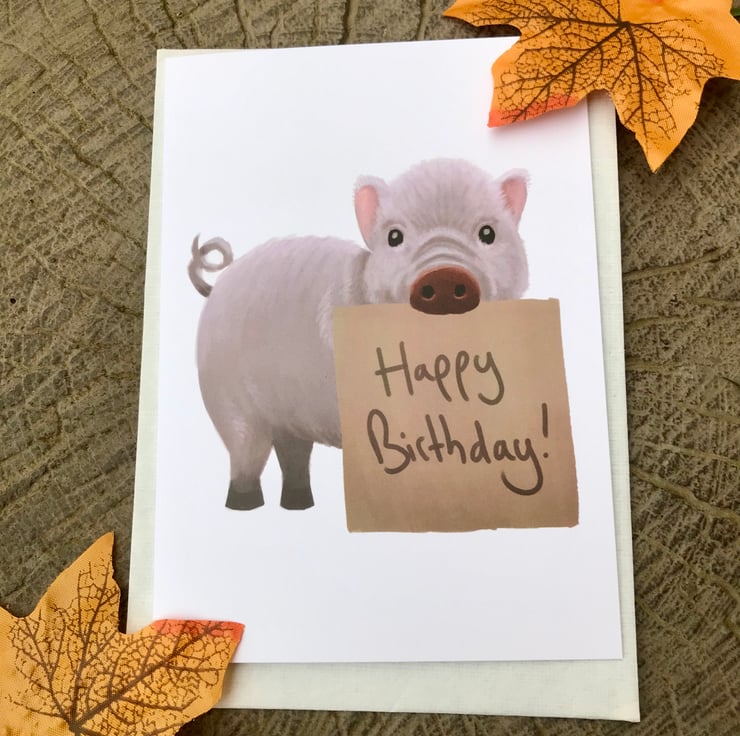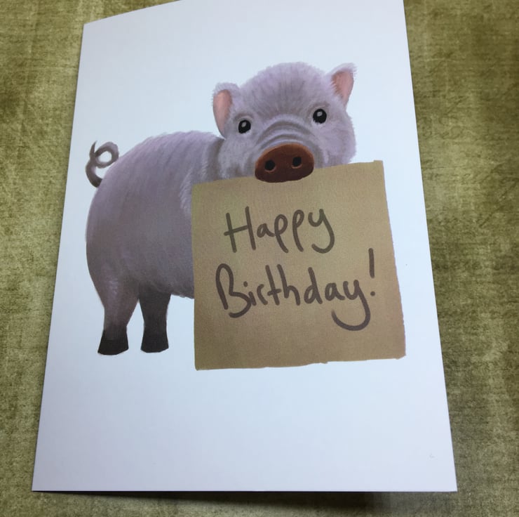 Happy Birthday Pig greeting card with white envelope by DuffleCat Prints (Damian Case)