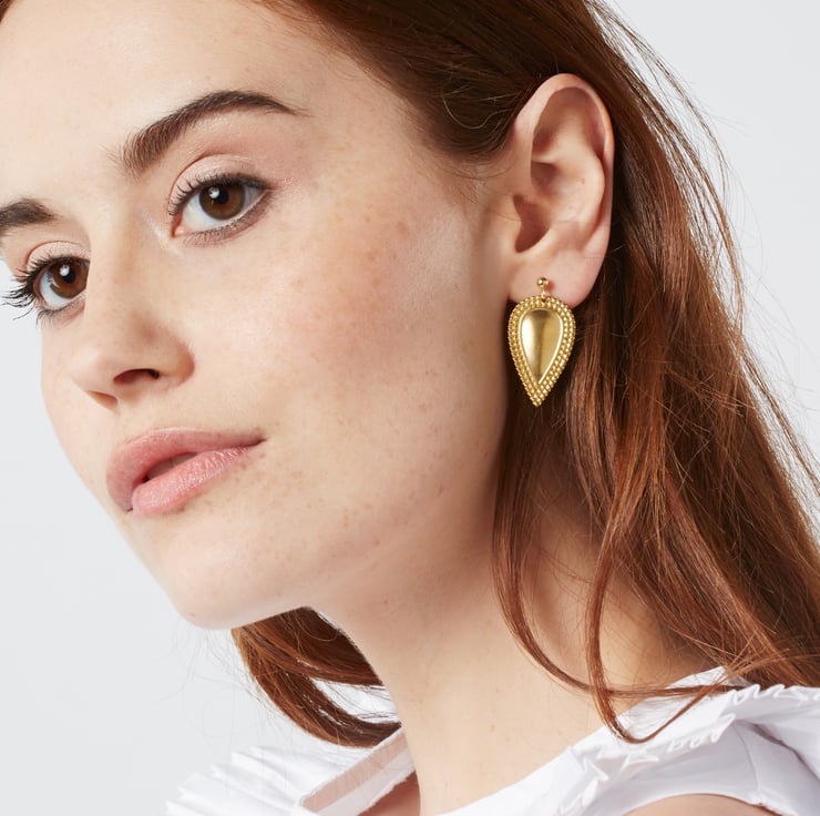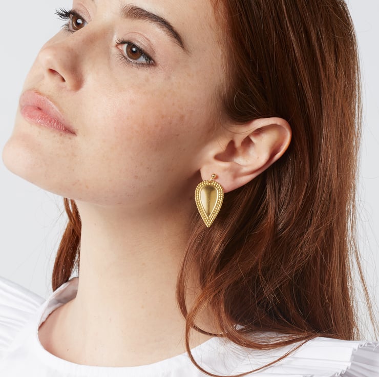 The smooth teardrop shapes are edged with 2 rows of ‘milgrain’ – decorative lines of tiny gold bumps all along the outer edge, a popular technique in antique jewellery.