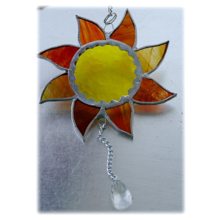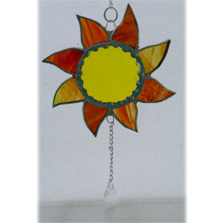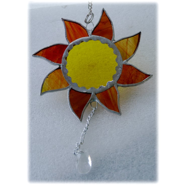 A silver coloured little chain is securely attached by solder to the top of the Sun with a little ring to hang it.