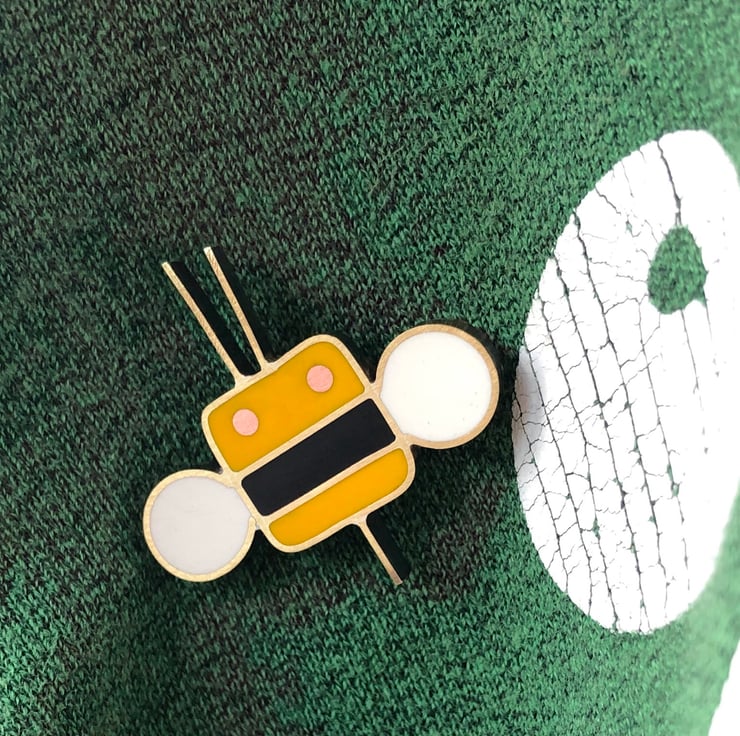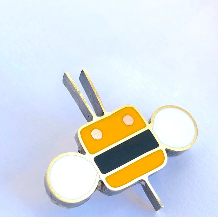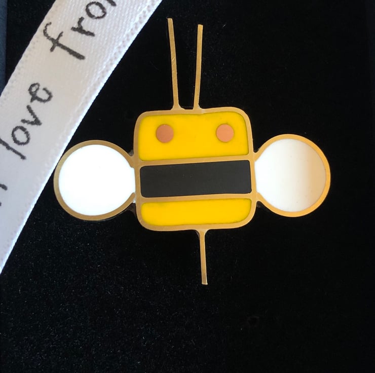 This bumblebee is made in brass using hand cut strips of metal that are then formed and soldered individually onto a base, then each section is painstakingly filled with hand mixed coloured resin that is polished to a shiny finish.