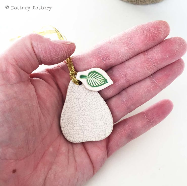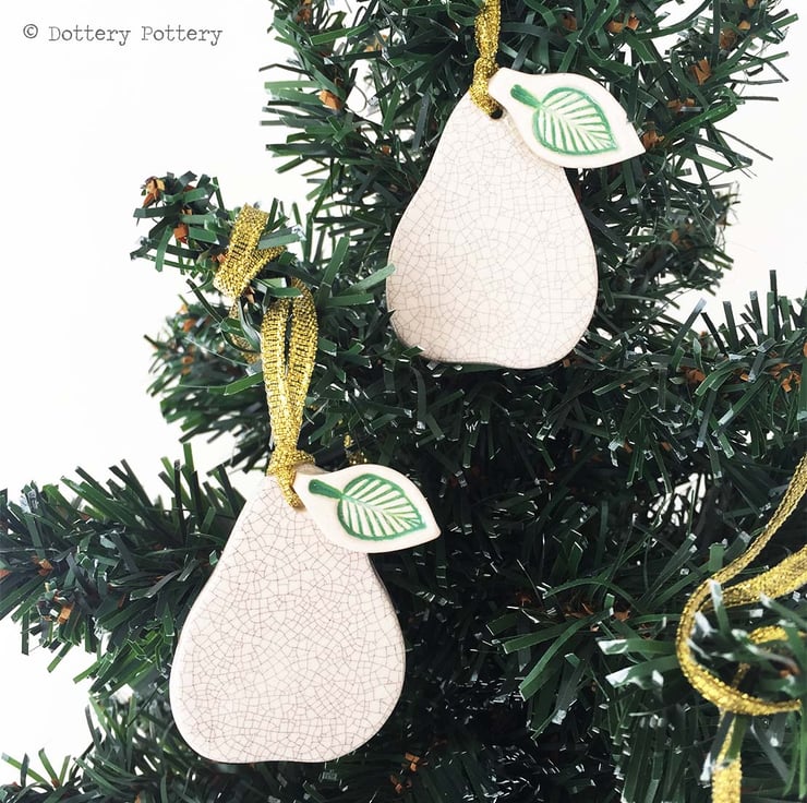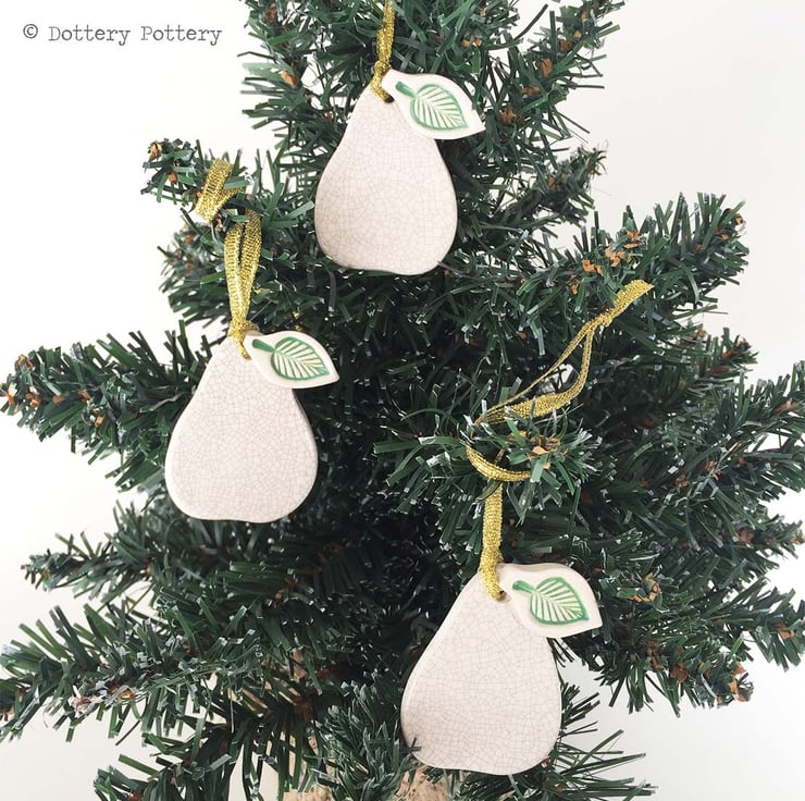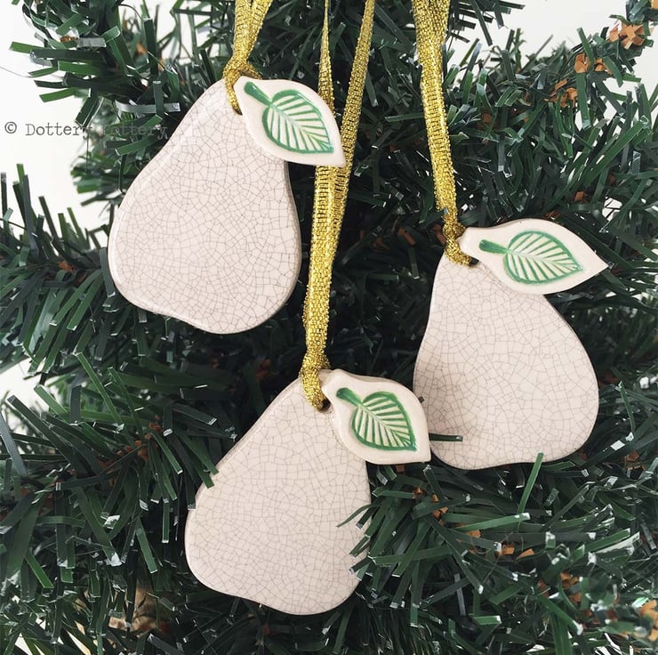 These cute little pears are made from white earthenware clay.and measure 5cm x 4.5cm. They have been fired once, glazed and then fired a second time. Each pear is glazed on the front only. Set of three.