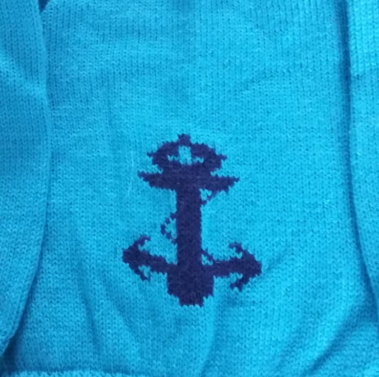 Anchor Jumper in navy or red. It can be made to measure in machine washable merino blend wool or cotton and in any other colour of your choice.