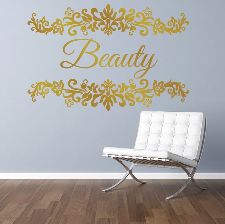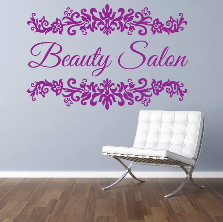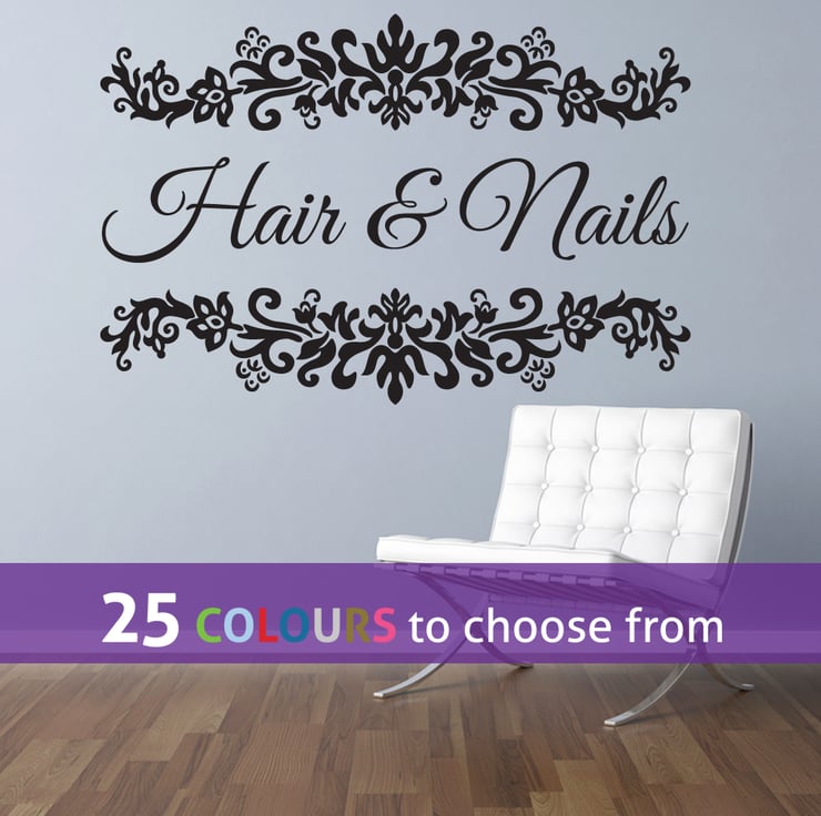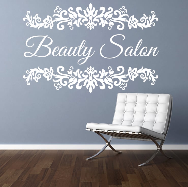 Personalised BEAUTY, nail, hair SALON, spa, custom business name, monogram, shabby chic, damask swirls frame wall art sticker decal transfer