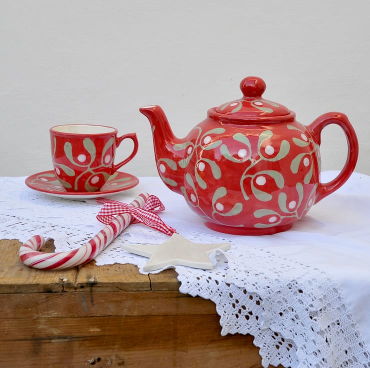 Christmas teapot wonderful for tea around the Christmas tree.