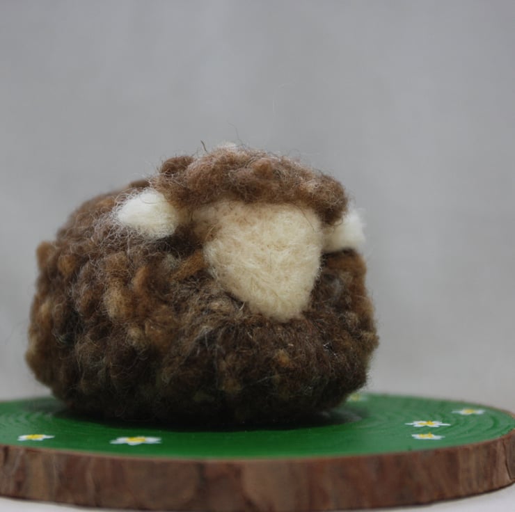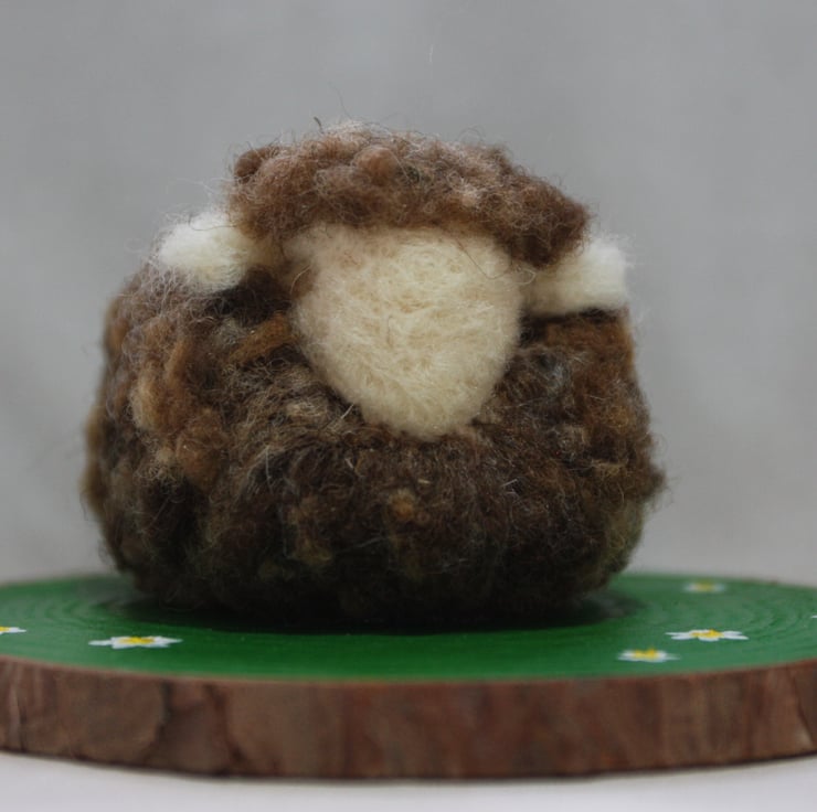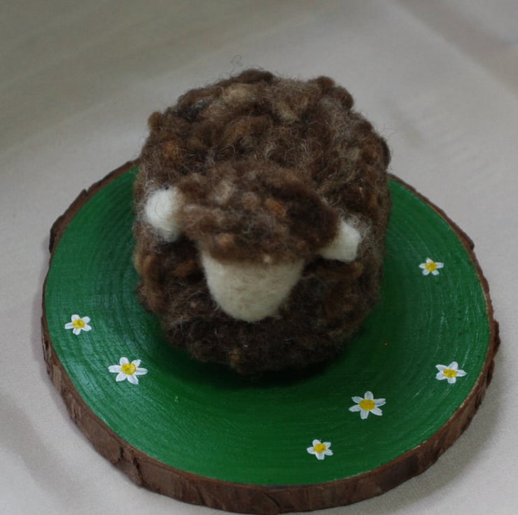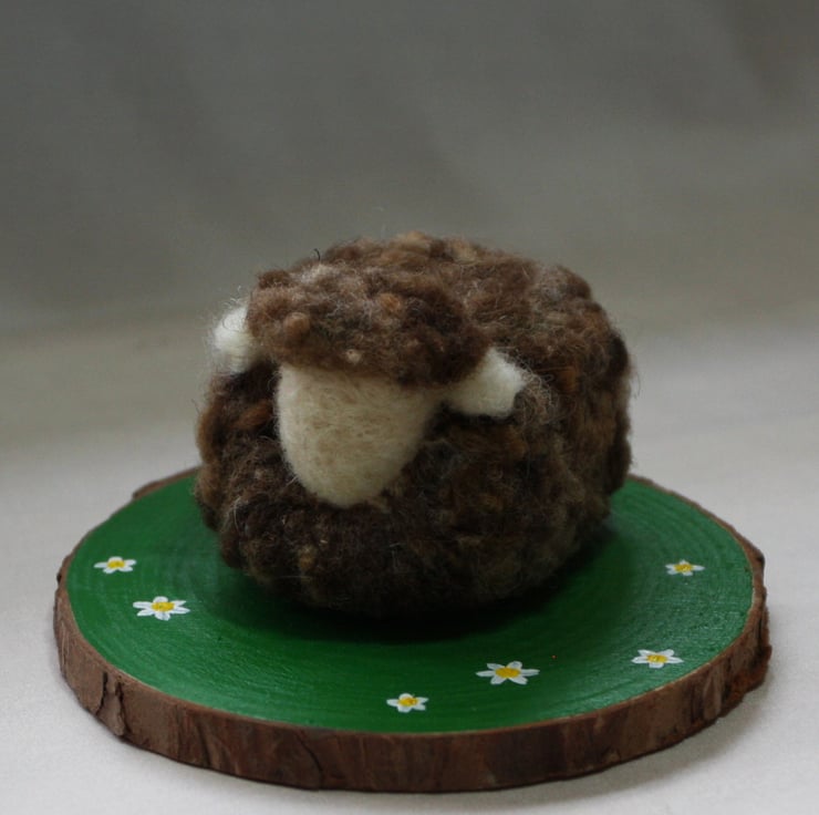 Veronica is a needle felted sheep sculpture measuring approx. 8cm x 7cm x 6cm, sitting in her field of dreams (approx 12cm diameter)... (sigh) What can I say about Veronica that hasn't already been said many times in hushed tones and quiet corners of the field by the others...Everyone deserves a fresh start though right?