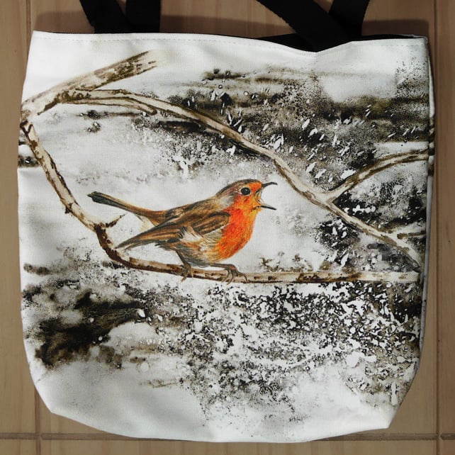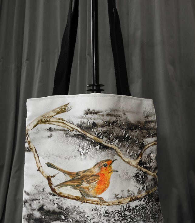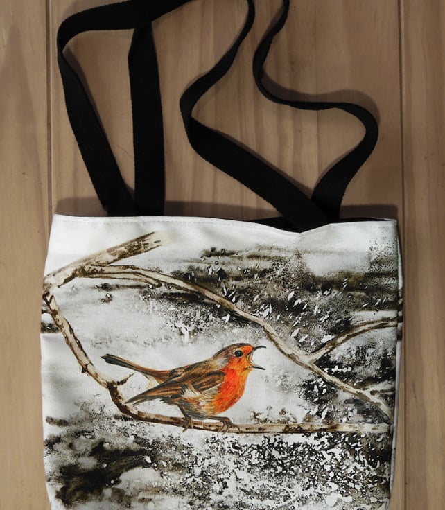 This joyful bag features an illustration of a robin singing happily at the top of his voice, and will brighten any day :-) The illustration was originally created for my children's book "The Tree with a Golden Heart" in the Adventures of Algy series.