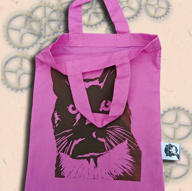 Hand printed pink 100% cotton mini tote bag.