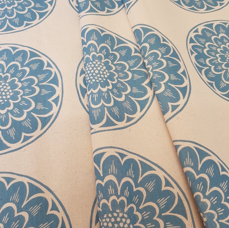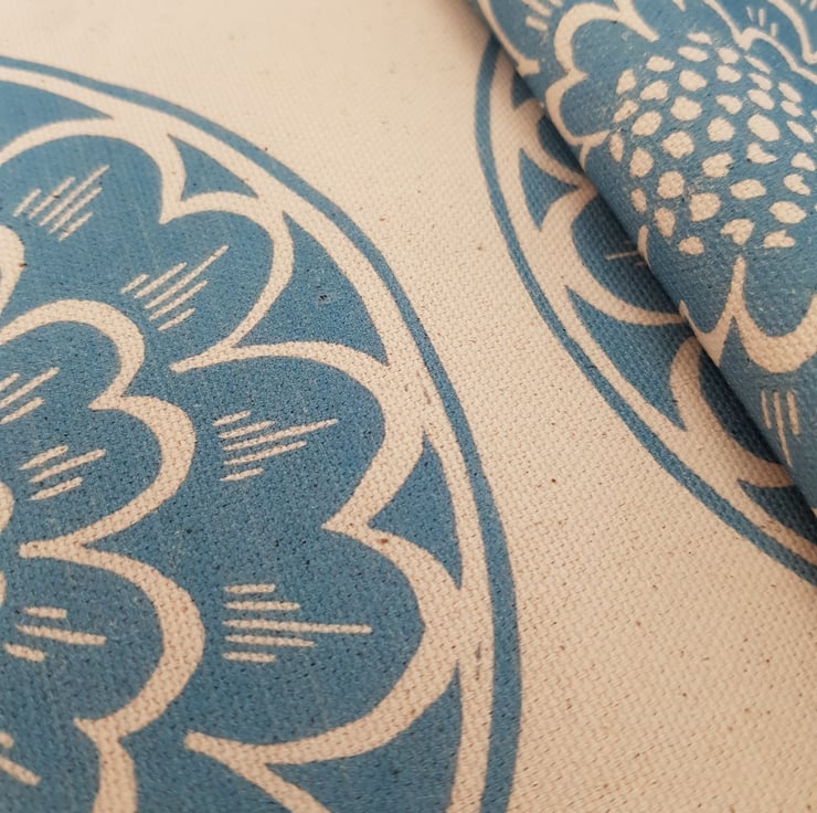 This Rosette design was created from my original lino print design. All my designs are hand carved in lino, then hand printed before being digitally printed onto fabric.