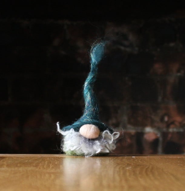 Philip is a needle felted gnome measuring approx.15cm tall but, to be honest, most of that is hat. It is a might fine hat though and our Phil is the kind of gnome to put a lot of effort into maintaining its sparkly stature. It is a hat to be proud of. He is also wearing a moss green tunic, but asked that I mostly mention the hat please. The hat is all that.