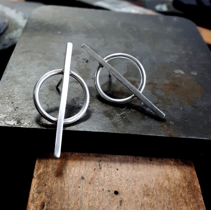 Contemporary stylish ands minimalist Hoop and Bar design stud earrings