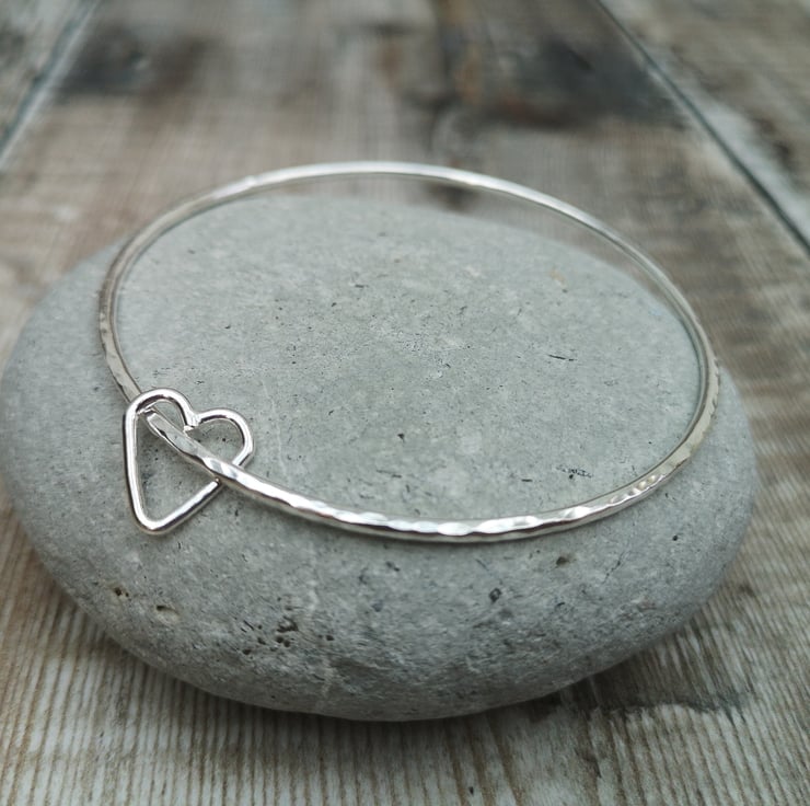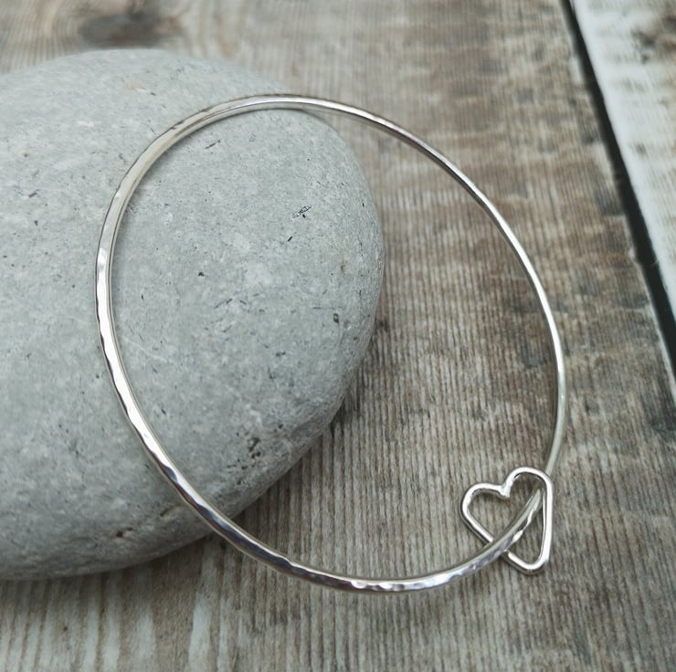 STERLING SILVER HAMMERED OPEN HEART BANGLE