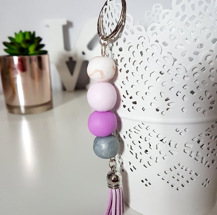 This listing is for ONE beaded keyring LILAC, GREY, PEACH, WHITE