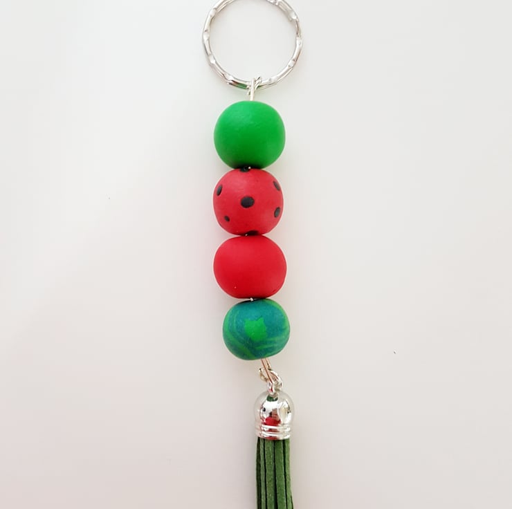 This listing is for ONE beaded keyring RED WATERMELON