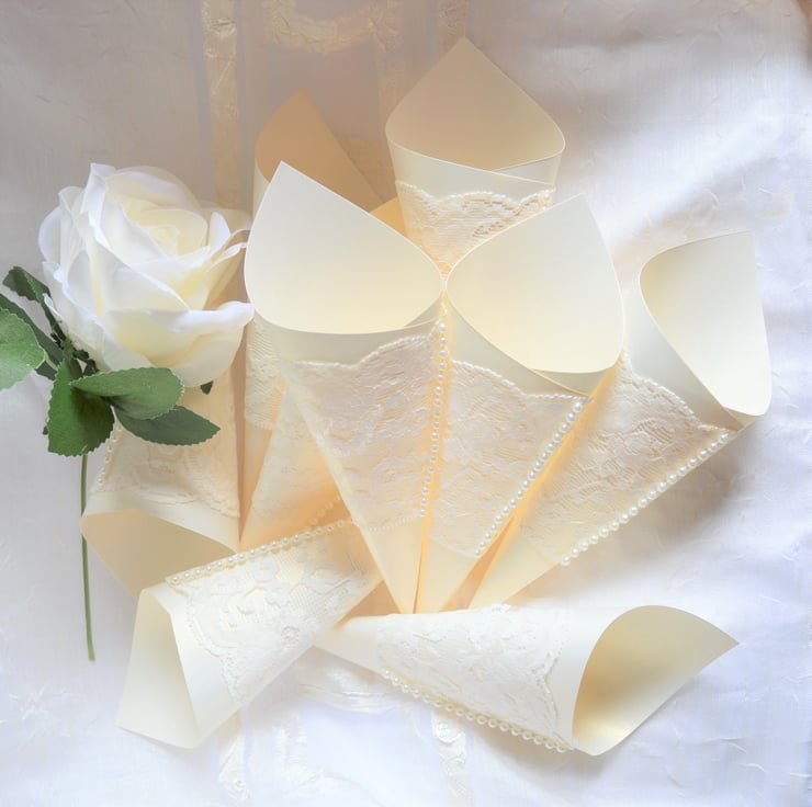 Beautiful Handmade Ivory Wedding Confetti, Afternoon Tea or Party Cones to fill with confetti, sugared almonds, chocolates or a small gift they are a special adornment to any wedding or table.