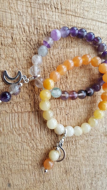 Beautiful 8mm beads consisting of Amethyst and fluorite to form an ombre effect with a removable moon charm. My stretch bracelets are normally made to fit 7 inches but if you require a bigger or smaller size, please simply specifiy upon purchasing.