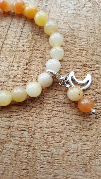 Gorgeous bright orange aventurine and yellow jade ombre effect stretch bracelet with removable moon charm. Made with 8mm beads, my stretch bracelets are made to 7 inches, if you require a bigger or smaller size, please specify upon purchasing :)