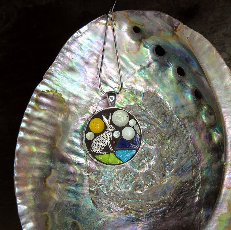 'Hare Moon' Glow In The Dark Mosaic Pendant