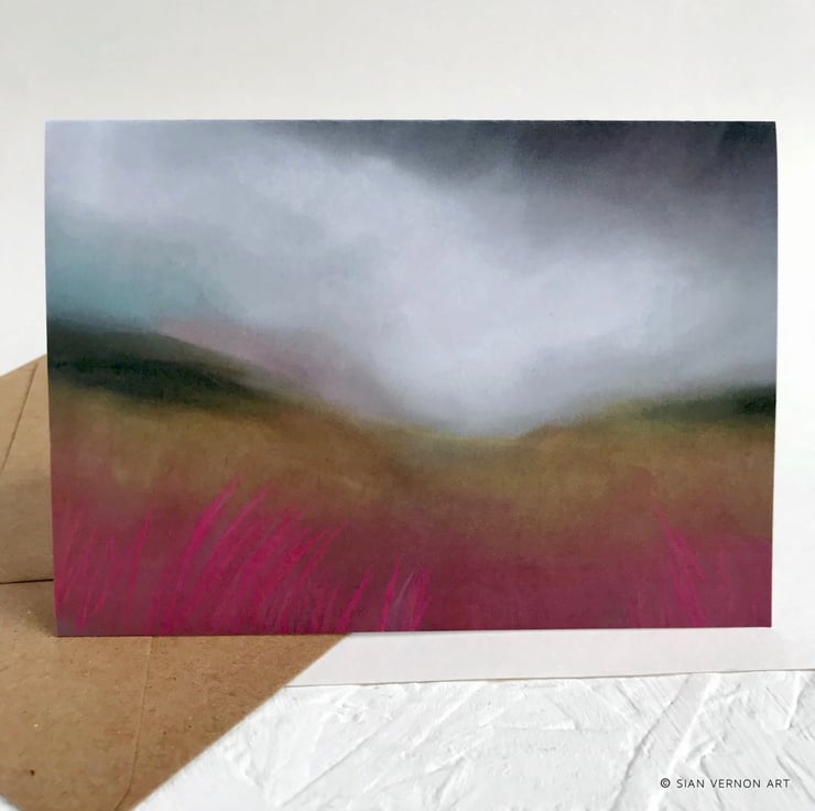An impressionistic painting of a rain storm approaching over the moors in the Dark Peak area of the Peak District National Park, this beautiful colourful greetings card is blank inside and suitable for any occasion. Perfect for someone who likes hill-walking, climbing or generally rambling around in the countryside.