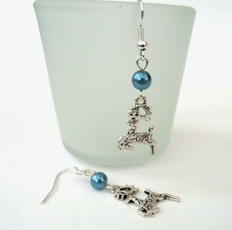 A cute pair of Christmas earrings, featuring tibetan silver reindeer charms.