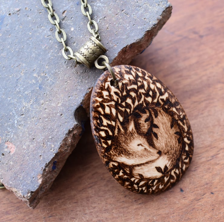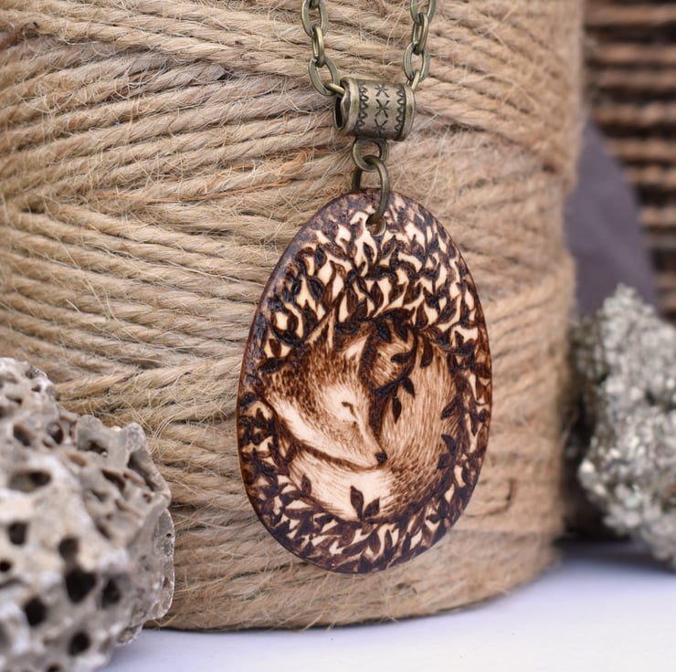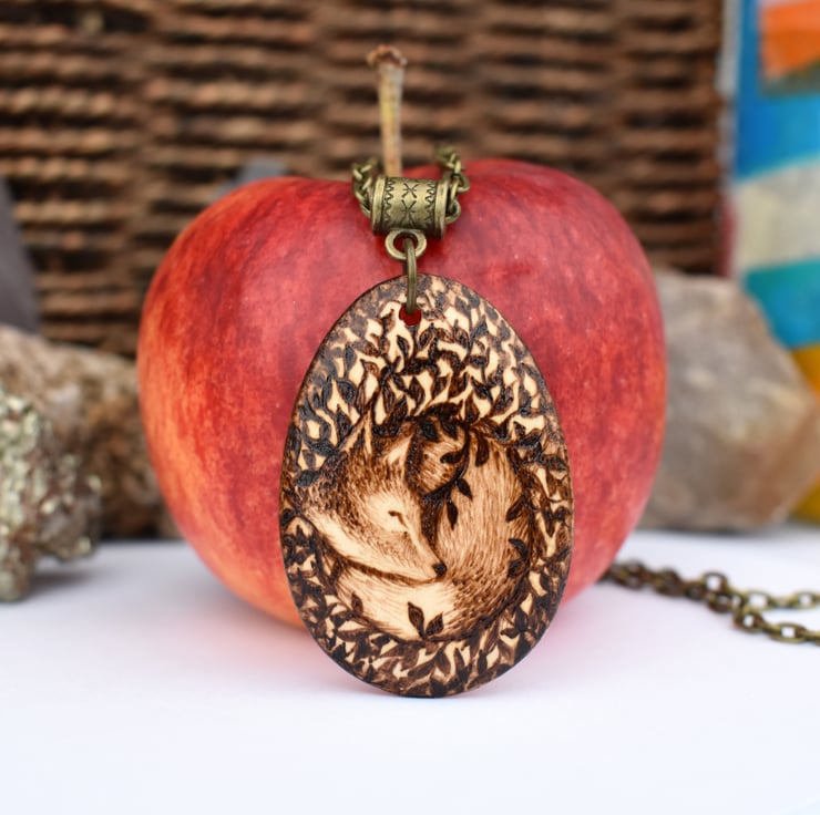 A cute sleeping fox cub in a leafy nest, shh don't wake him! Hand burned into the wooden teardrop using pyrography or wood burning. Ideal for a nature lover's birthday or for a five year wood anniversary gift.