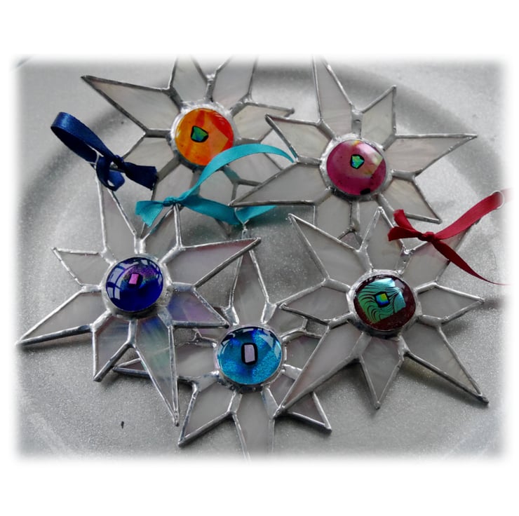 This item is absolutely unique. I never make two pieces exactly the same, I always use different variations of colour and textures of glass. Each of the stars has a different coloured nugget.