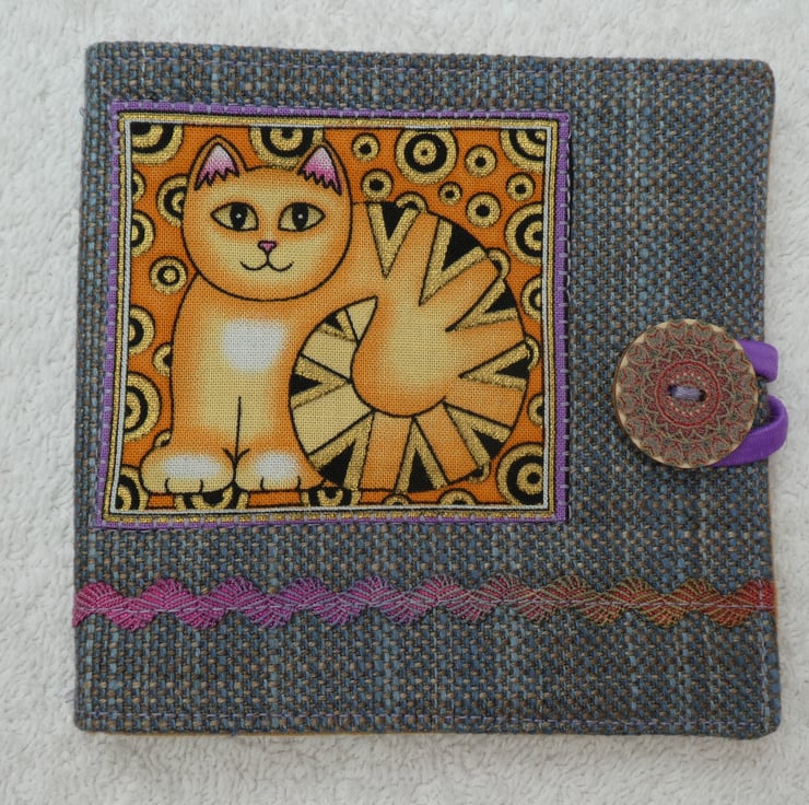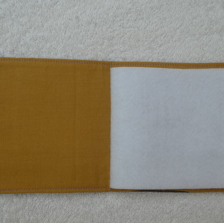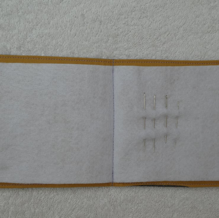 I have created this lovely sewing needle case from an upholstery weight woven cotton.It has an applique decorative panel and embellished with ric rac. The needle case is lined in a plain mustard coloured cotton fabric, has interfacing for structure and has a felt insert to keep your needles safe. The case has a printed wooden button and elastic to close, and is top stitched for a professional finish. The needles shown in the picture are included.