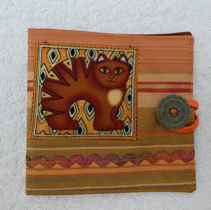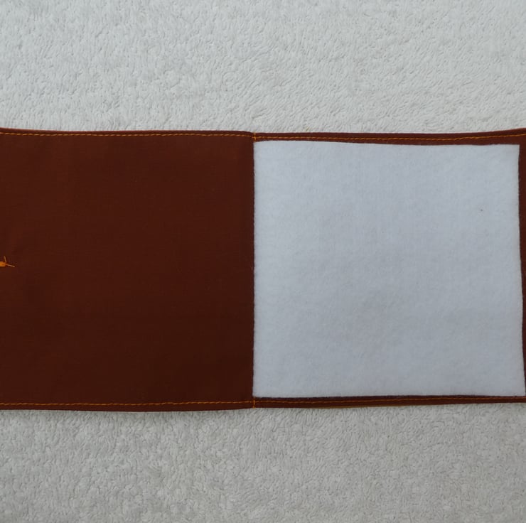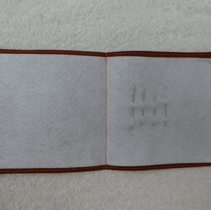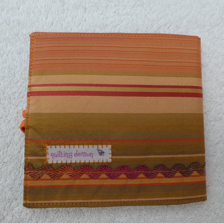 I have created this lovely sewing needle case from woven silk fabric .It has an applique decorative panel and embellished with braid. The needle case is lined in a plain brown cotton fabric, has interfacing for structure and has a felt insert to keep your needles safe. The case has a printed wooden button and elastic to close, and is top stitched for a professional finish. The needles shown in the picture are included.