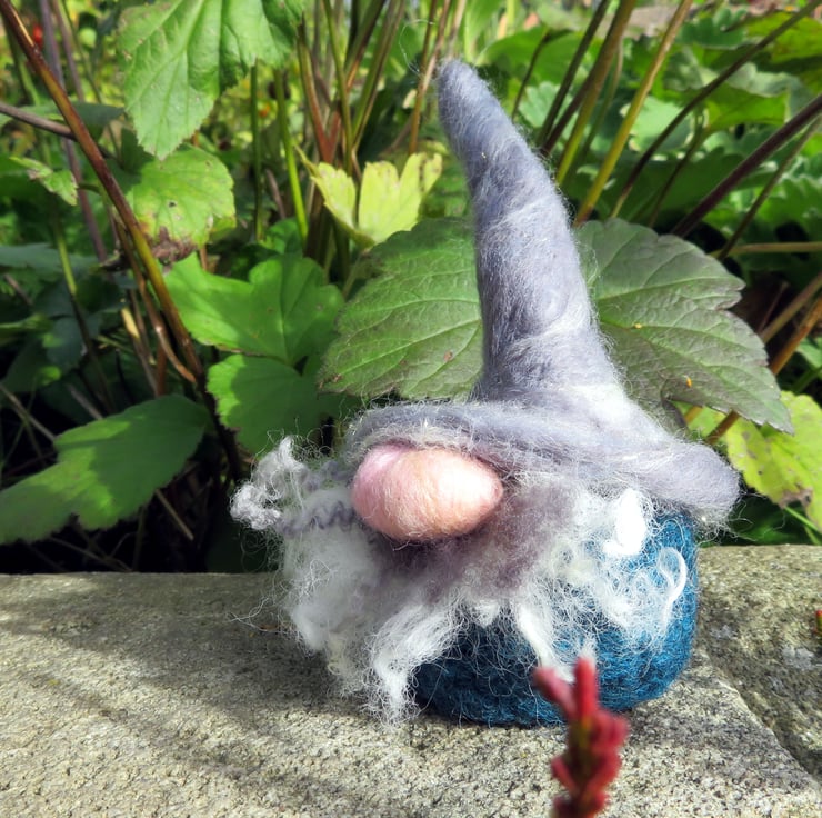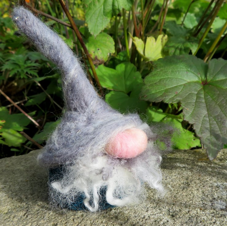 Craig is a needle felted gnome measuring approx.12cm tall. With a hat of finest silver and tunic of teal, Craig has topped the Best Dressed Gnome List three years running, and that is not a thing to be sniffed at...no, really, NEVER sniff a gnome...