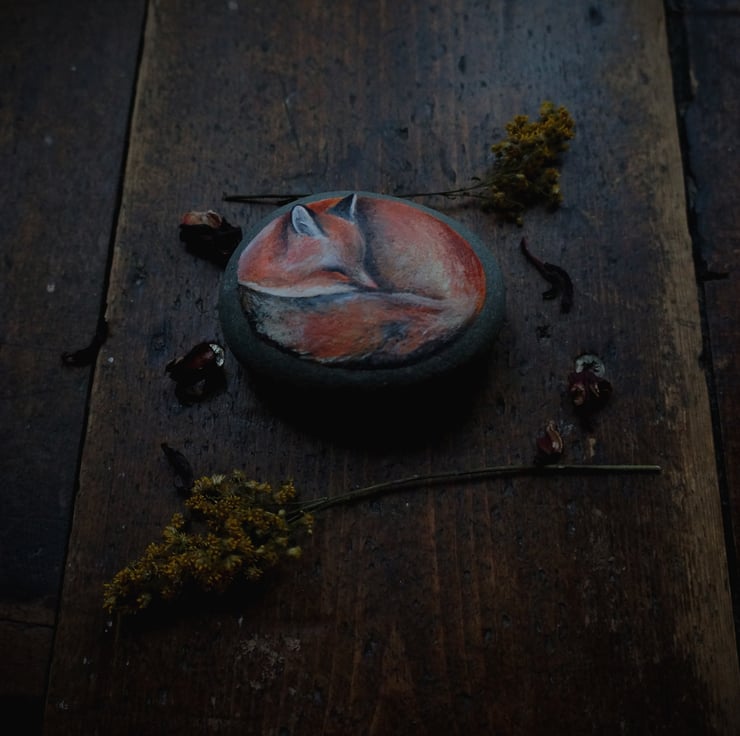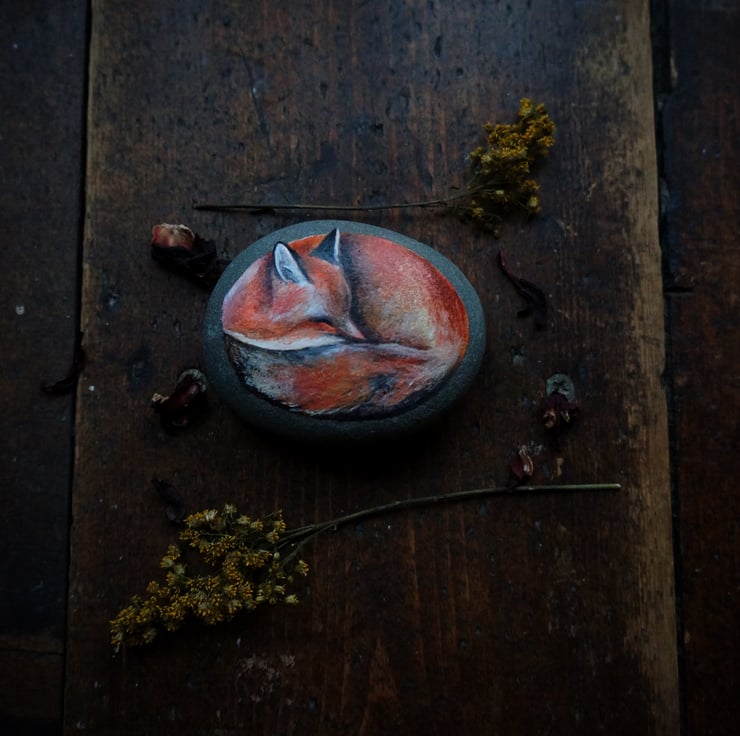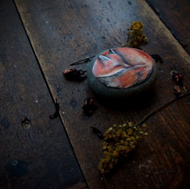 One of a kind original fox painting on stone.