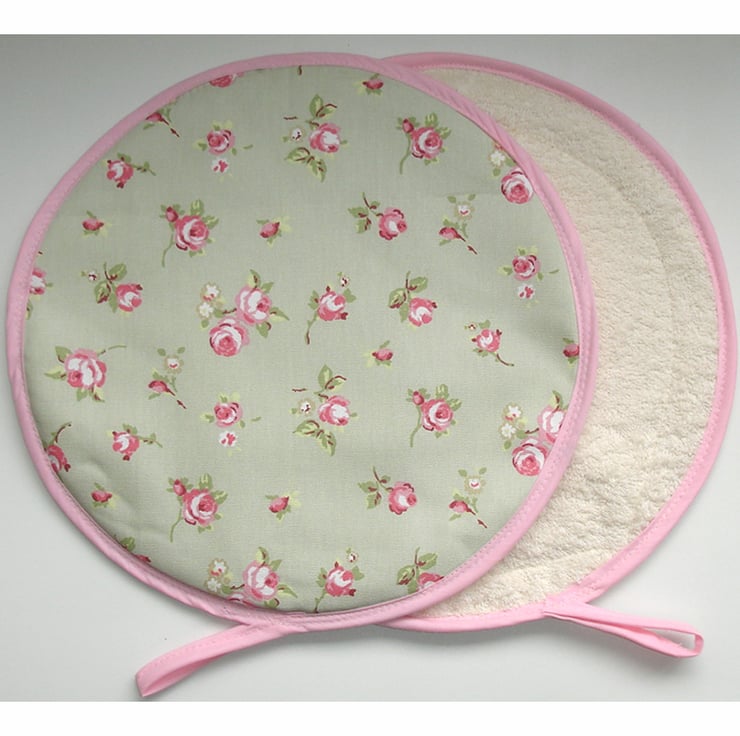 This mat has three layers - Facing cotton fabric, a layer of padding and a layer of towelling - Making it also suitable for mopping up and pot-grabbing!