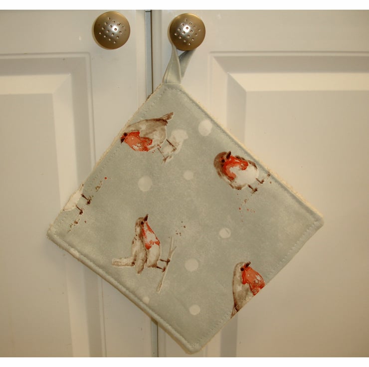A Pot Holder backed with a cream towel fabric - useful for mopping up around the kitchen,