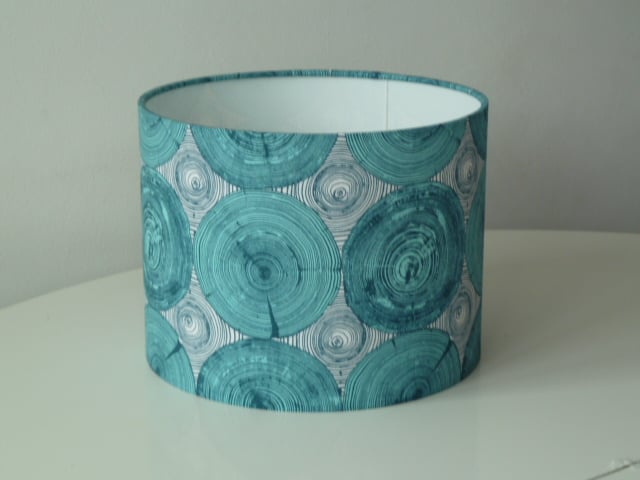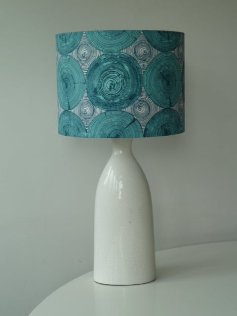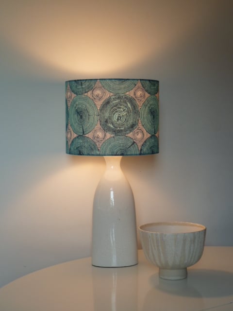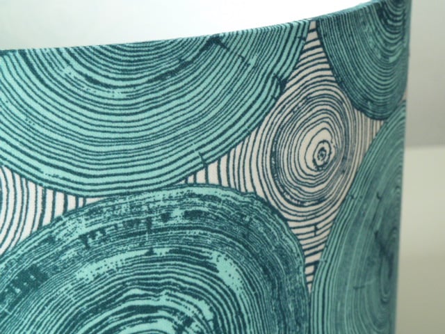 Contemporary drum lampshade covered in now rare Joel Dewberry 'Tree Ring Bling' fabric.