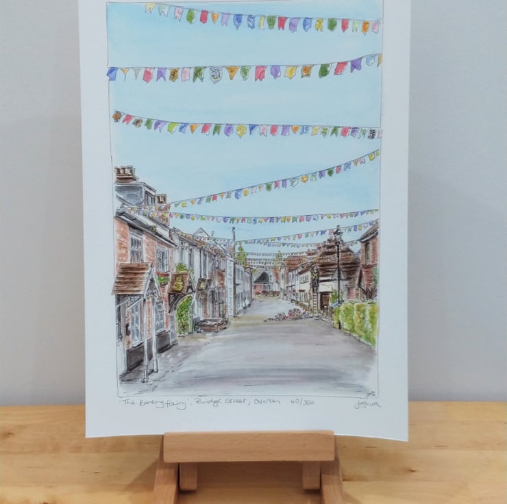 'The Bunting Fairy'.  Bridge Street, Overton - Limited Edition Art Print