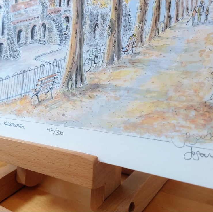 A limited edition Giclee print of 300, each print is individually titled, numbered and signed by myself. The original painting is created with pen and ink with watercolour.