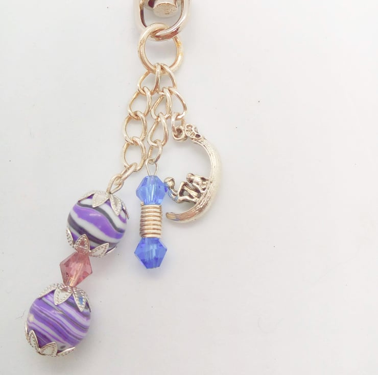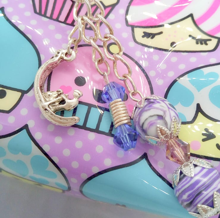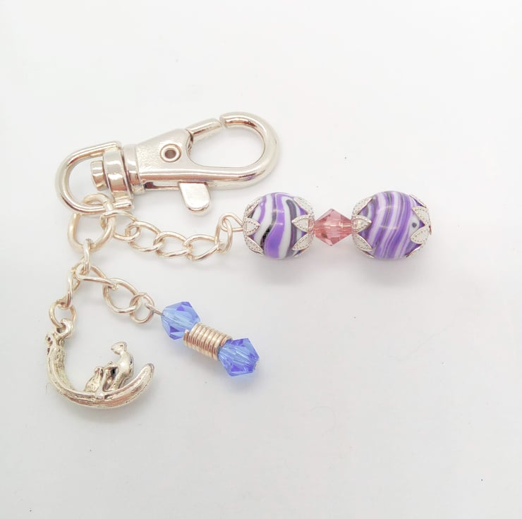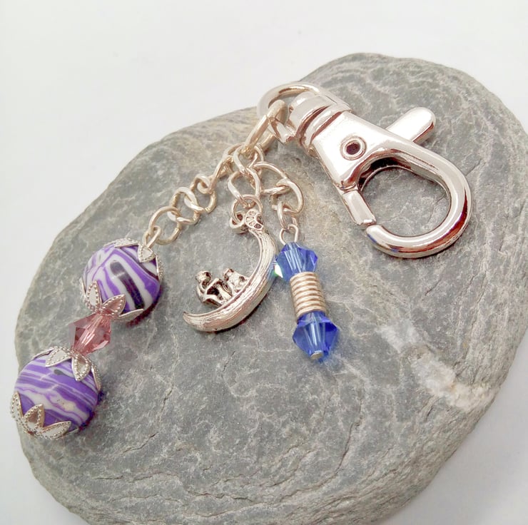 Purple Agate and Blue Crystal Hand Bag Charm with a Silver Gondola Charm, Teacher's Gift, Christmas Gift