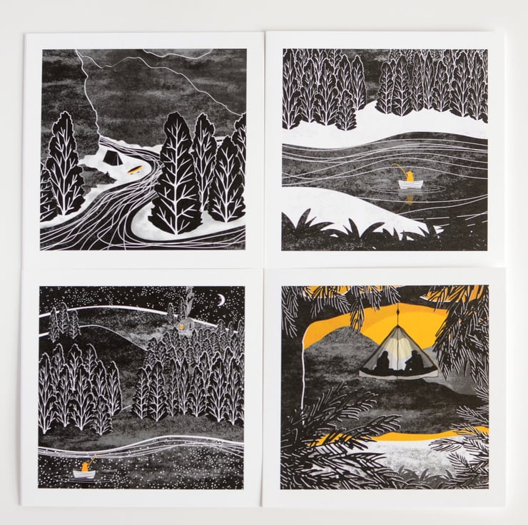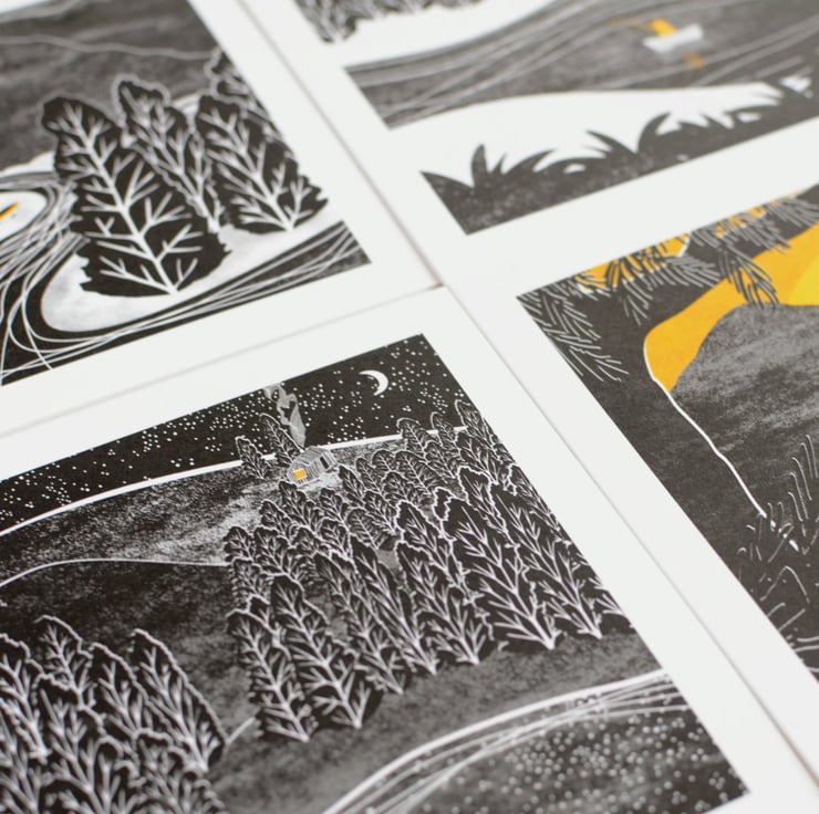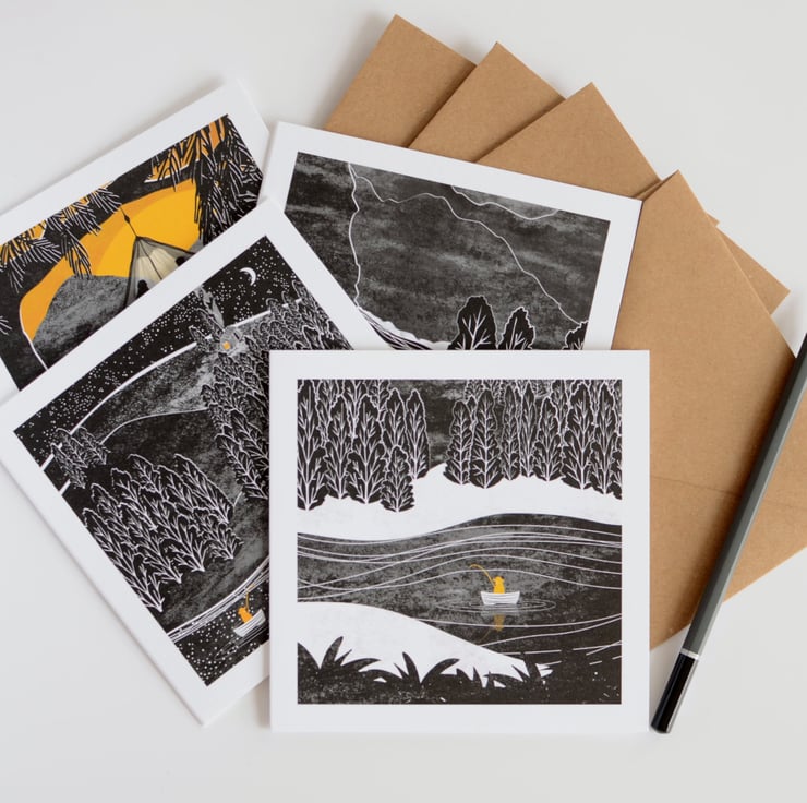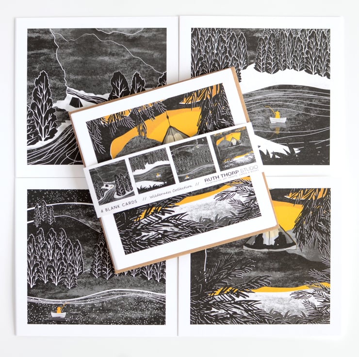 Escape to another place with these black, white and yellow Wilderness Collection greeting cards. The pack includes 4 blank greetings cards, 1 of each design shown. Beautifully presented as a collection, they would also make a wonderful gift.