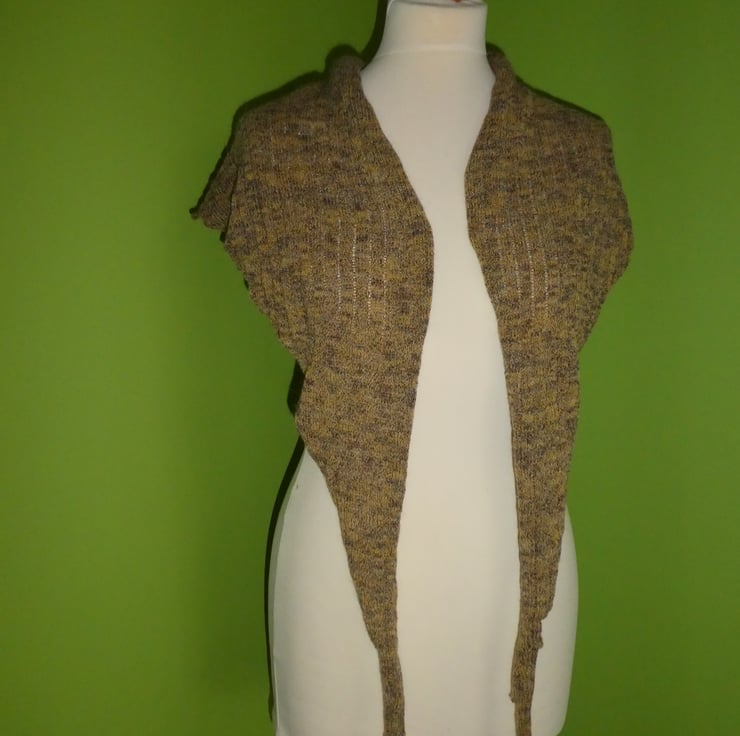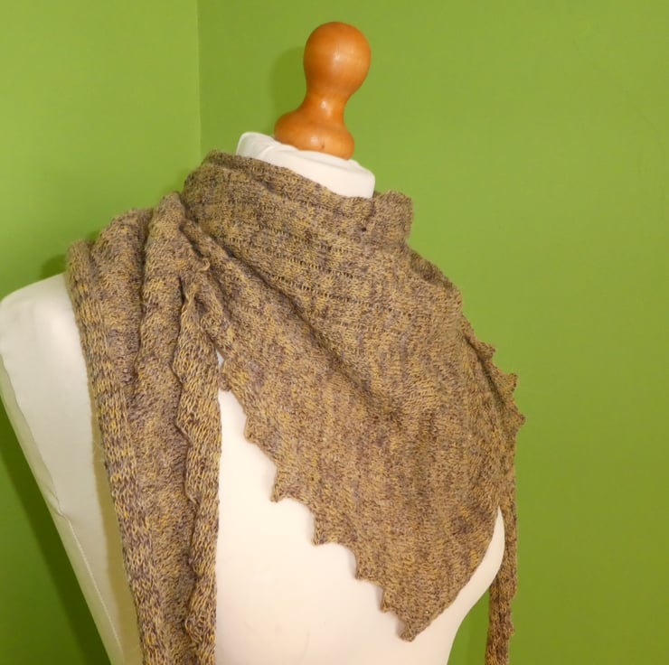 I have created this triangular scarf on a Knit-master knitting machine. It is beautifully soft and has a wonderful drape.