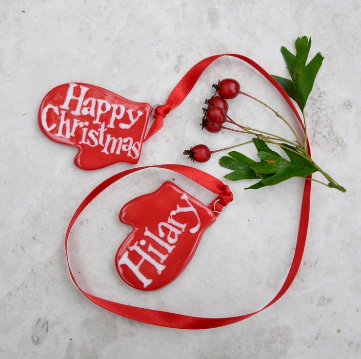This sweet little Mittens is a fun decoration for Christmas tree.