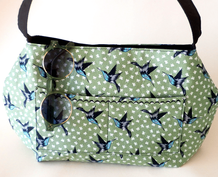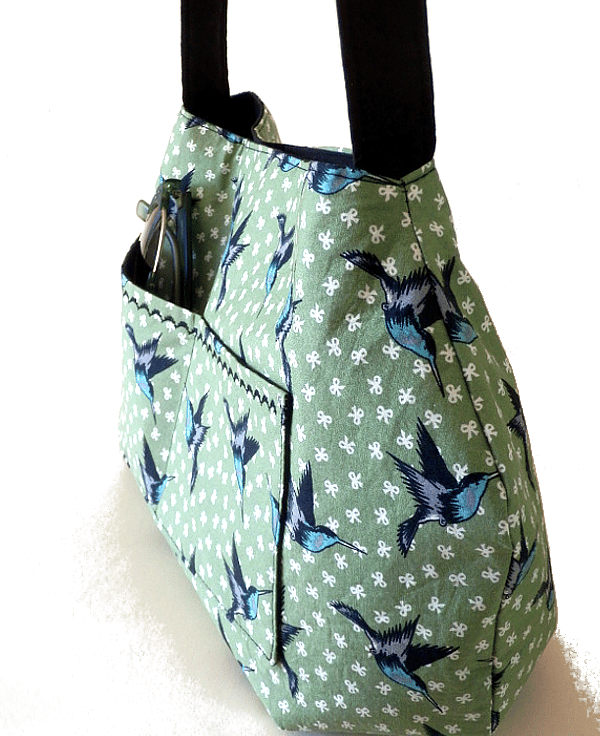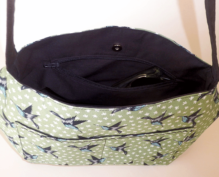 The lining is black and this is also used for the handle. A magnetic snap provides closure for the main body of the bag. Inside is a roomy zip pocket. The outside has a double slip pocket, handy for those things you want to access quickly, like a travel pass.