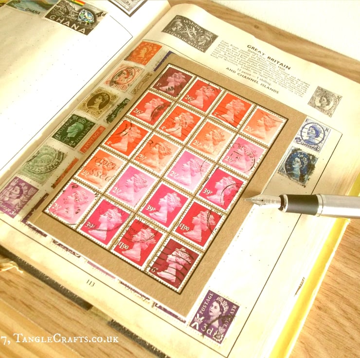 I'm obsessed with old postage stamps, but this iconic British stamp holds a special place in my heart as it is the one I grew up with. It has been around since before I was born, first issued in the 1960s, and still issued up to the present day. This means it is (historically) available in a vast spectrum of colours, which are a joy to get crafty with!