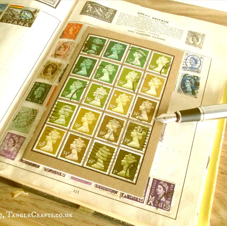 I'm obsessed with old postage stamps, but this iconic British stamp holds a special place in my heart as it is the one I grew up with. It has been around since before I was born, first issued in the 1960s, and still issued up to the present day. This means it is (historically) available in a vast spectrum of colours, which are a joy to get crafty with!