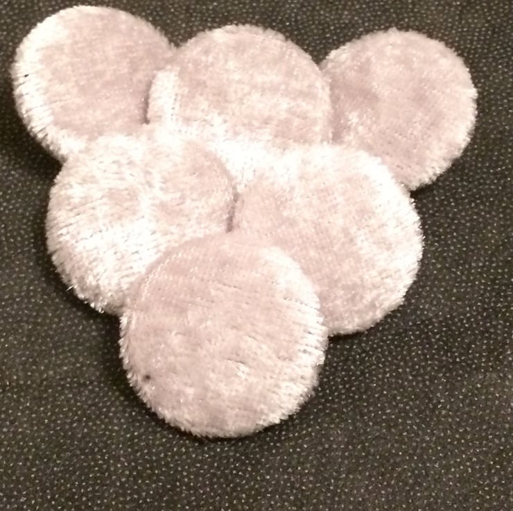 These Silver Crushed Velvet buttons are handmade using a professional button press and are available in a choice of sizes of 16mm, 20mm and 25mm and pack sizes of either 2, 6 or 10 buttons buttons with either a black plastic shank or a metal loop shank back and FREE UK POSTAGE. Please select your choices from the drop down menu at checkout.