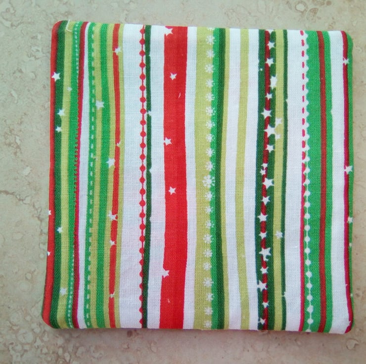 Pretty handmade Christmas coasters in co-ordinating fabrics.