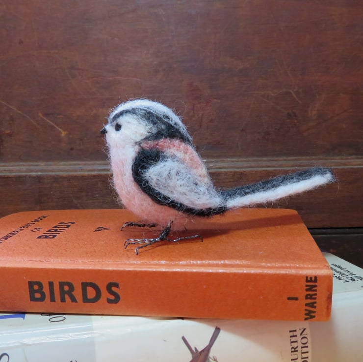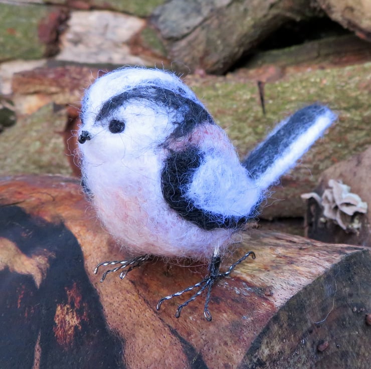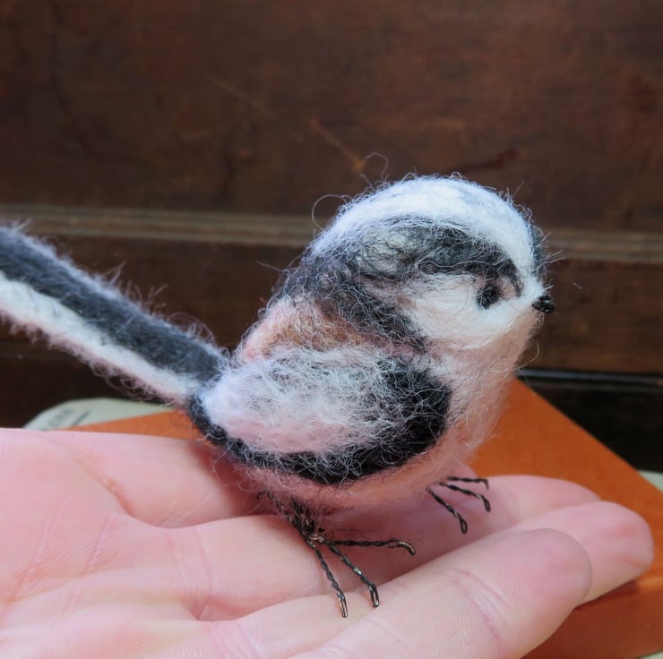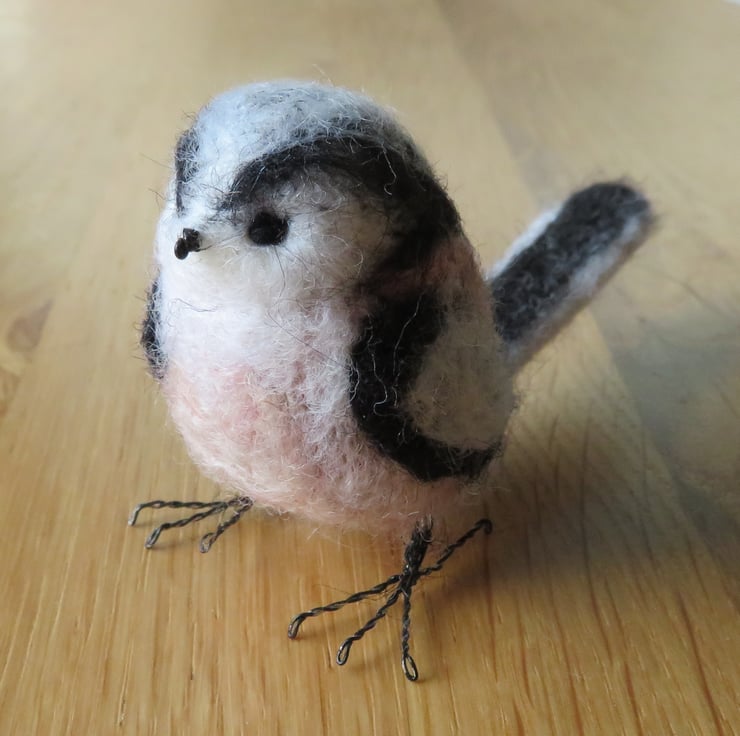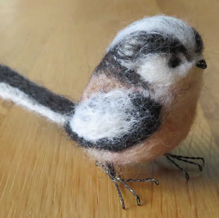 This little freestanding long tailed tit is needle felted over a wire framework for extra stability, with wire feet and beak. Please message me if you would like to see more photos.