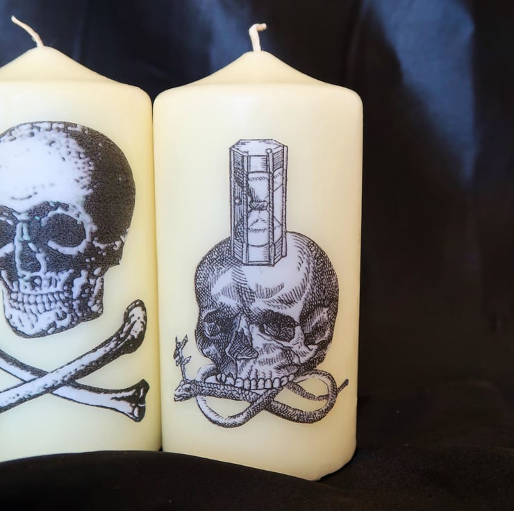 Four Handmade Gothic Skull Macabre Memento Mori Death Candles