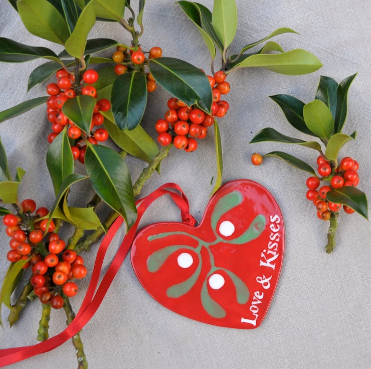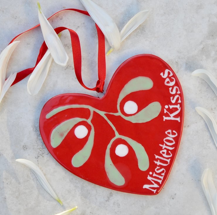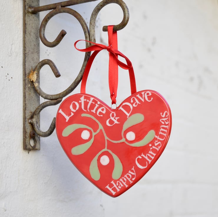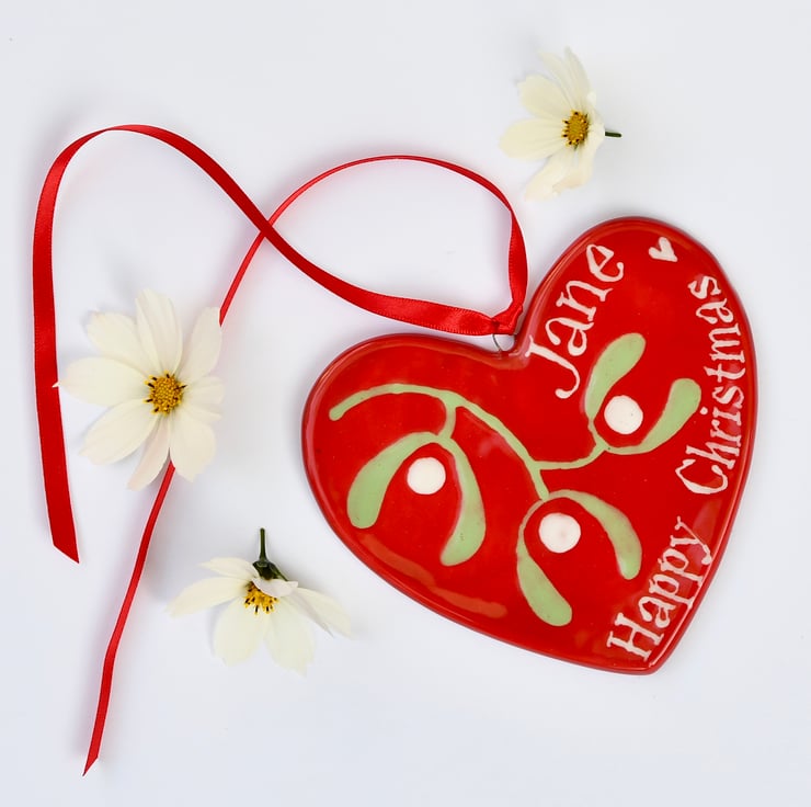 This vibrant red Mistletoe Heart, personalised for you can be used in a number of ways. They make wonderful Christmas tree decorations, place names for your Christmas dinner or even as identifying labels on presents.