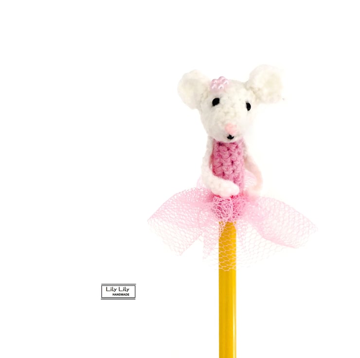 A sweet animal pencil topper crocheted by Lily Lily Handmade. This listing is for Belinda, the ballerina mouse who is wearing a pretty pink ballet tutu. Loved by both children and adults.