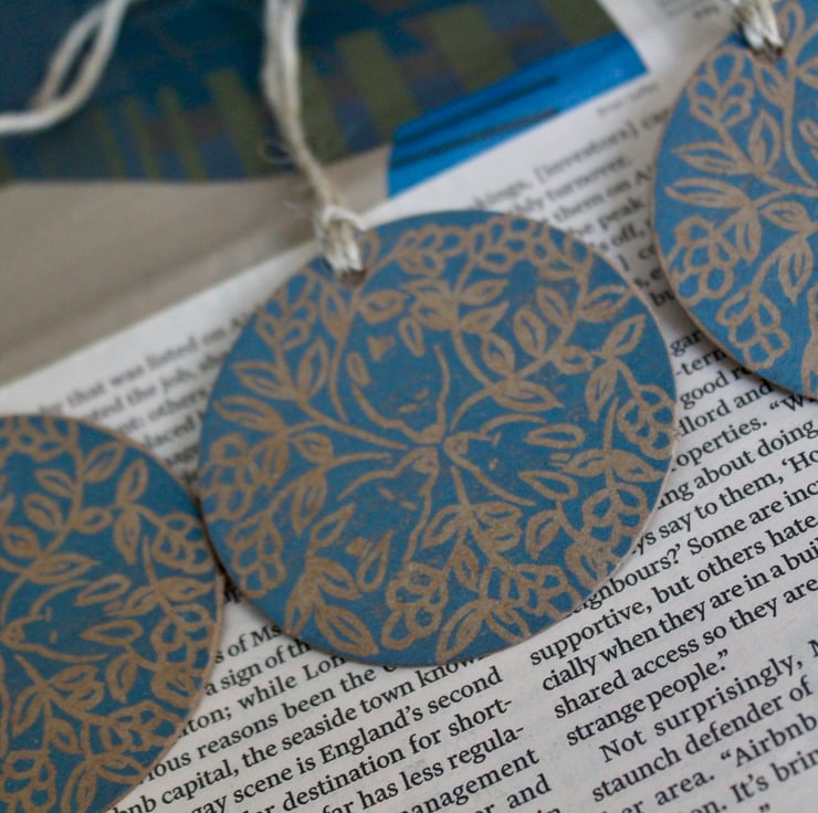 Brighten up your gift or parcel with these set of three Hand printed Gift tags using a linocut technique.