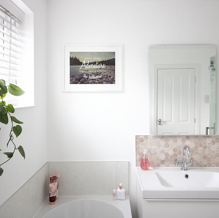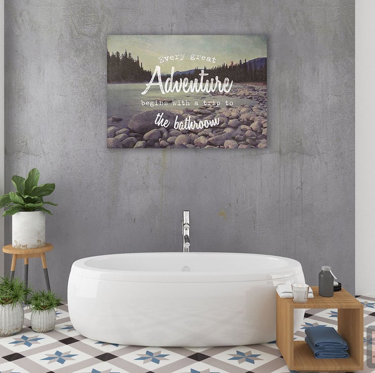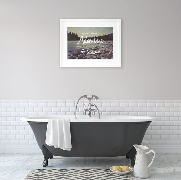 Looking for toilet wall art? This bathroom art print would make a great gift for new home owners or for anyone looking to modernise their home with new cloakroom prints, toilet prints or bathroom art. This mountain adventure art is luxuriously packaged and is archival quality making it a perfect housewarming gift idea for new home owners.