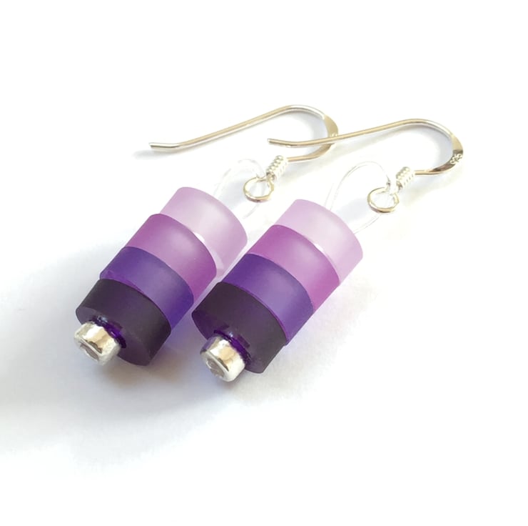 These lovely, contemporary earrings are made with the off-cuts of our tubing and we’re quite pleased with how great they look. They measure about 2cm-3cm drop length and the hook is sterling silver. They go really well with everything in the shop. The hardest part is trying to decide ‘which colour?’.